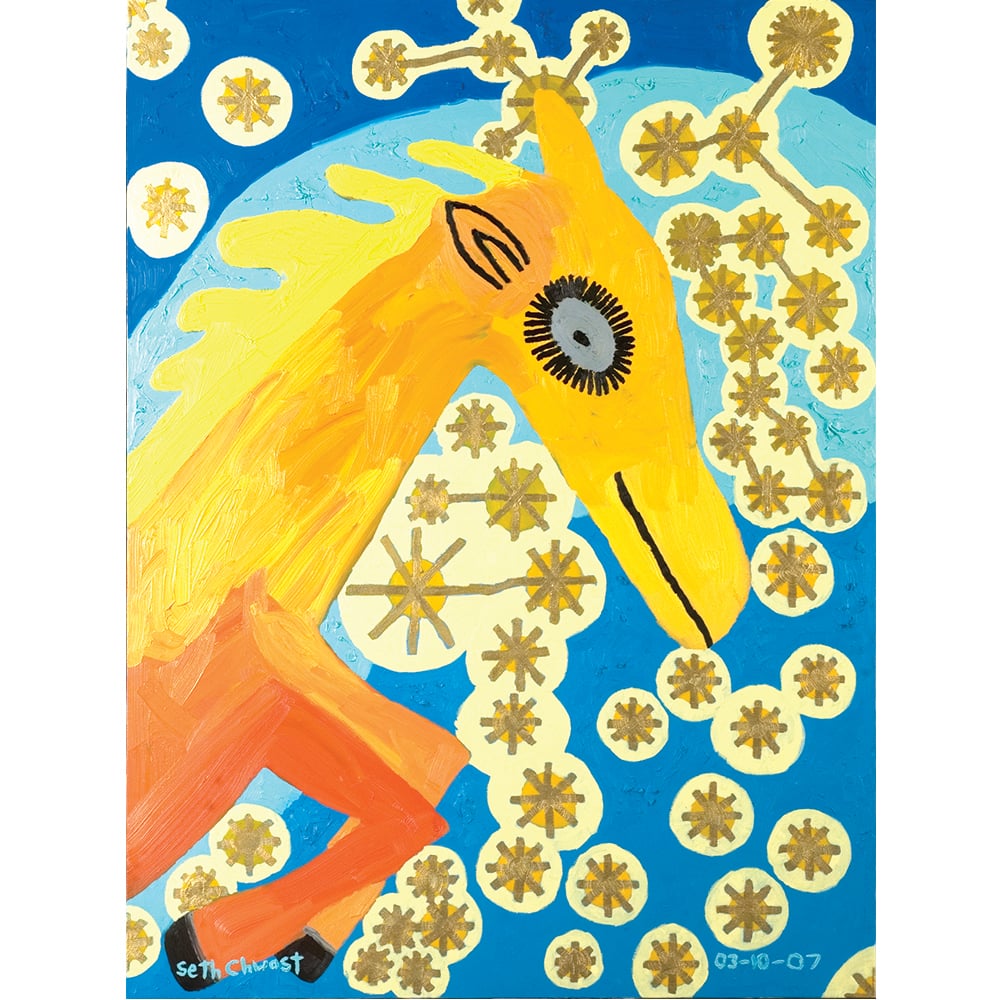 Signed and numbered print of "Orange Fantasy Pegasus # 7 Head with Stars" by Seth Chwast.