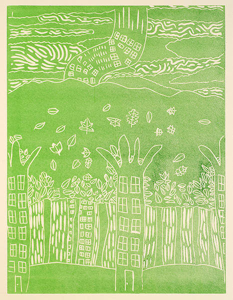 Signed and numbered monoprint of "The Treehouse" by Seth Chwast.