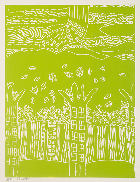 Signed and numbered monoprint of "The Treehouse" by Seth Chwast.