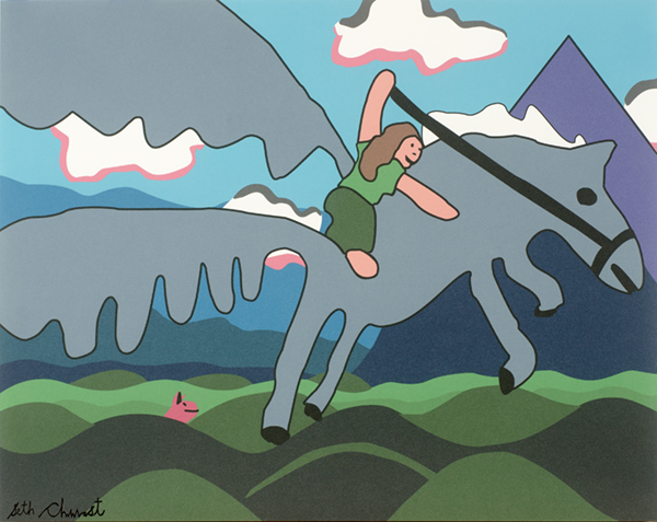 Hand-made silkscreen of Seth's piece "Mythic Creatures Mural Detail: Flying on Pegasus"