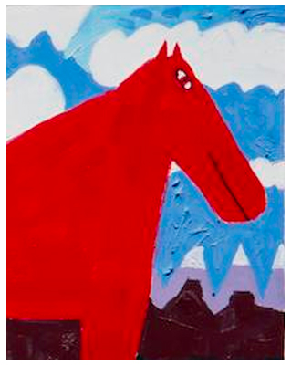 High quality photograph of Seth Chwast's piece "Big Red Fantasy Horse Detail: The Head of the Horse" on museum-quality gloss photo paper. (Silver gelatin print).